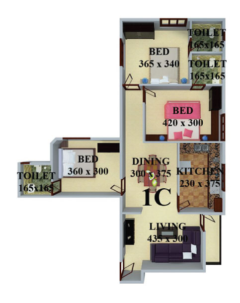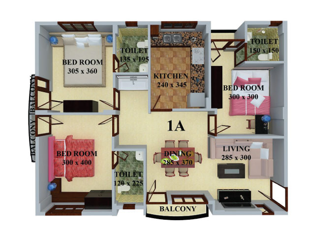- Bed room & Balcony : 2x2 Virtrified Living & Dining